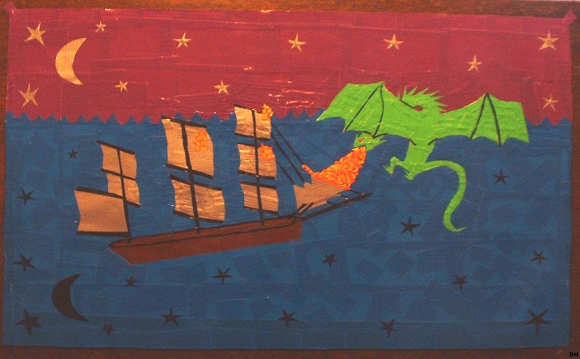 Here is a duct tape mural I made of a dragon breathing fire on a