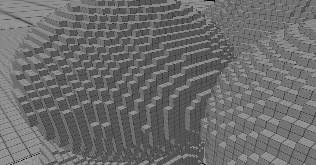 spheres in virtual chunks that are each 2x2x2 normal chunks.